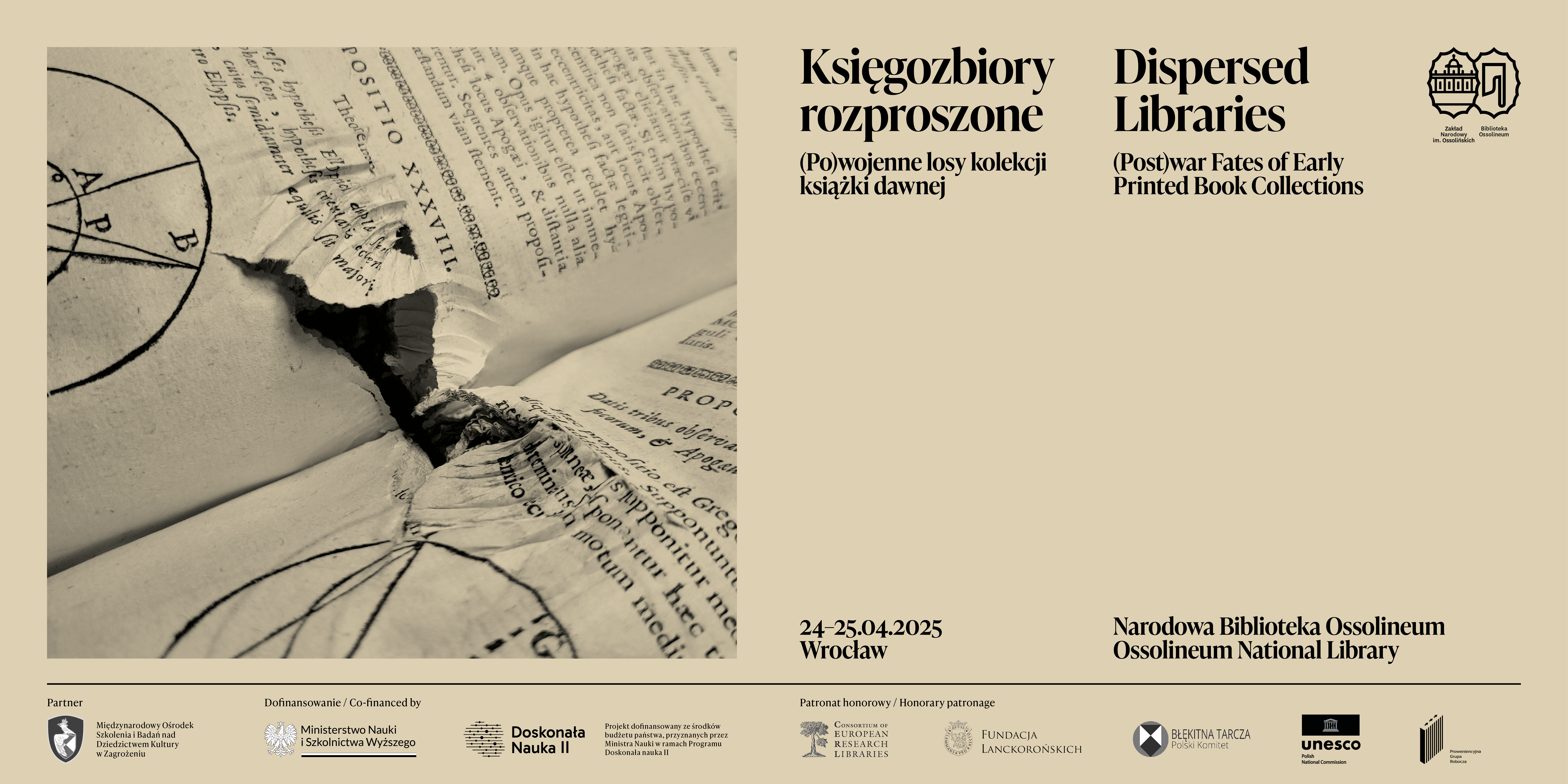 Zakład Narodowy im.Ossolińskich zaprasza do wzięcia udziału w konferencji Księgozbiory rozproszone - (po)wojenne losy kolekcji książki dawnej / Dispersed libraries - (Post)war Fates of Early Printed Book Collections.