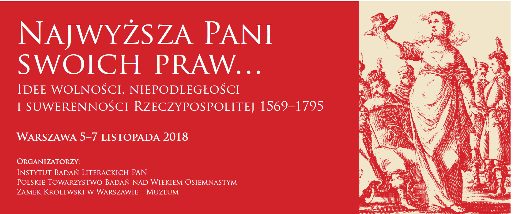 Celem naszego spotkania ma być właśnie próba odpowiedzi na to pytanie, zastanowienia się, jak w myśli i dyskursie politycznym Rzeczypospolitej Obojga Narodów, a także w rozważaniach filozoficznych, prawnych, w szeroko rozumianej literaturze pięknej, a nawet w dziełach artystycznych od wieku XVI po XVIII przedstawiano kwestie związane z niezawisłością państwa, jego podmiotowością w grze mocarstw europejskich, suwerennością w stosunkach międzynarodowych.