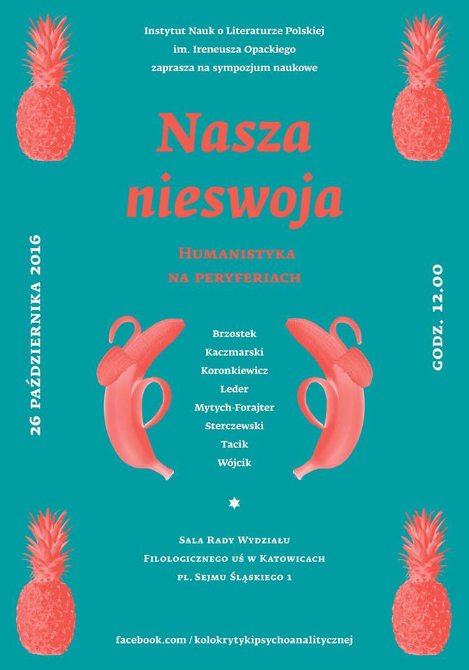 Na sympozjum organizowanym przez Koło Krytyki Psychoanalitycznej oraz Instytut Nauk o Literaturze Polskiej UŚ w Katowicach zaproszeni goście zmierzą się z pytaniem o warunki istnienia polskiej myśli humanistycznej – kondycję i przyszłość naszej nieswojej, przerysowanej humanistyki.