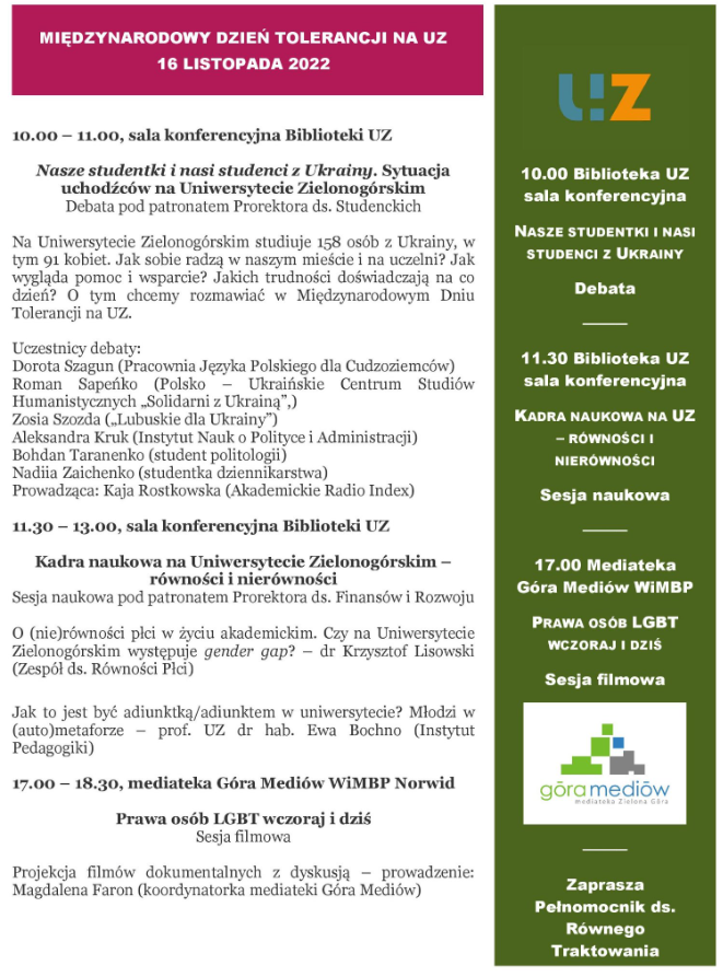Obchody Międzynarodowego Dnia Tolerancji na Uniwersytecie Zielonogórskim
