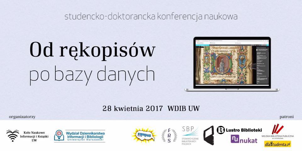 Organizator: Koło Naukowe Informacji i Książki Wydziału Dziennikarstwa, Informacji i Bibliologii Uniwersytetu Warszawskiego