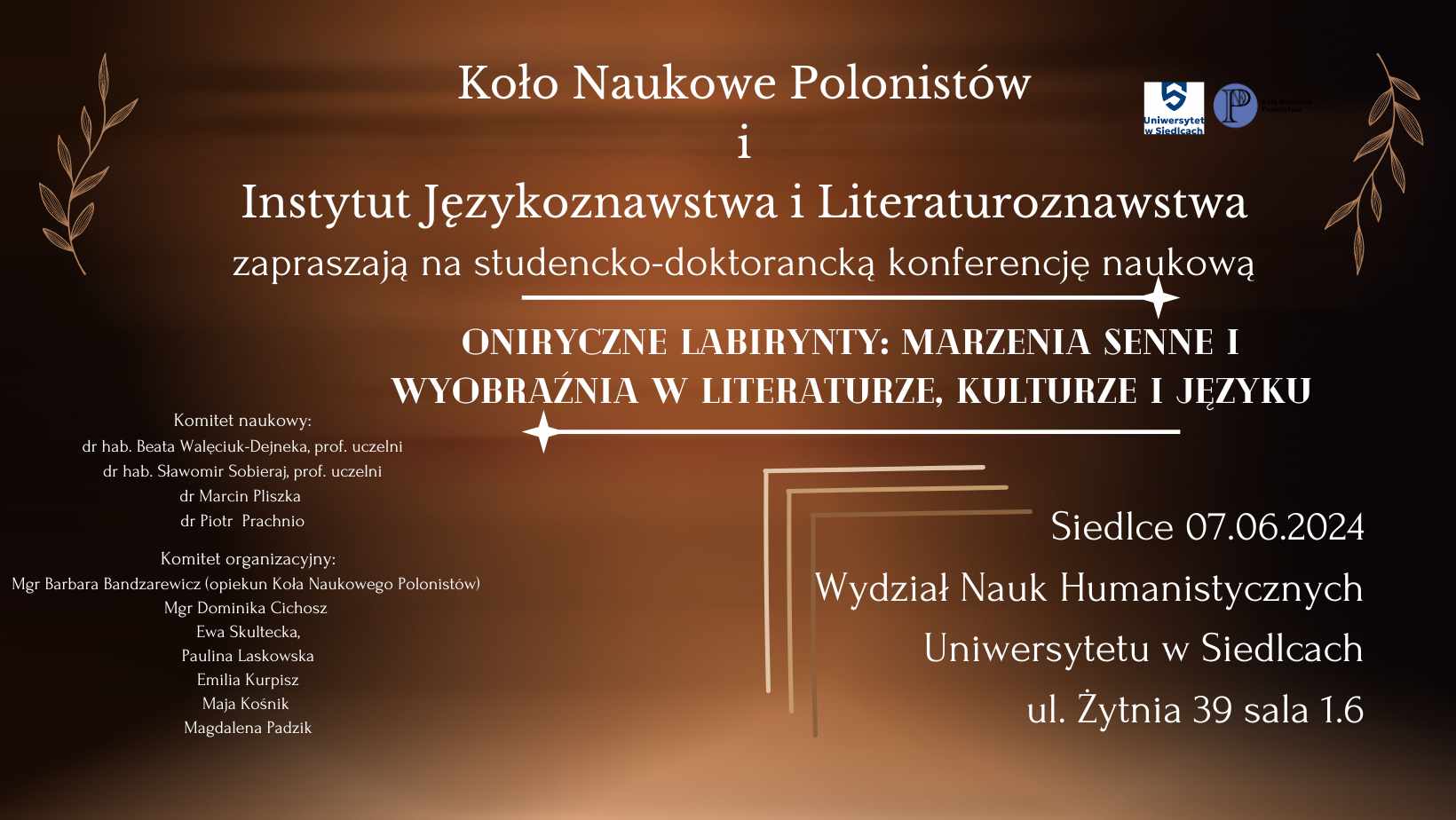 Koło Naukowe Polonistów oraz Instytut Językoznawstwa i Literaturoznawstwa Uniwersytetu w Siedlcach zapraszają do wzięcia udziału w krajowej konferencji studencko-doktoranckiej Oniryczne labirynty: marzenia senne i wyobraźnia w literaturze, kulturze i języku.