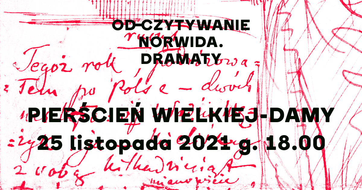 Instytut Teatralny im. Zbigniewa Raszewskiego zaprasza na wieczór poświęcony „Pierścieniowi Wielkiej-Damy” w ramach cyklu „Od-czytywanie Norwida. Dramaty”.