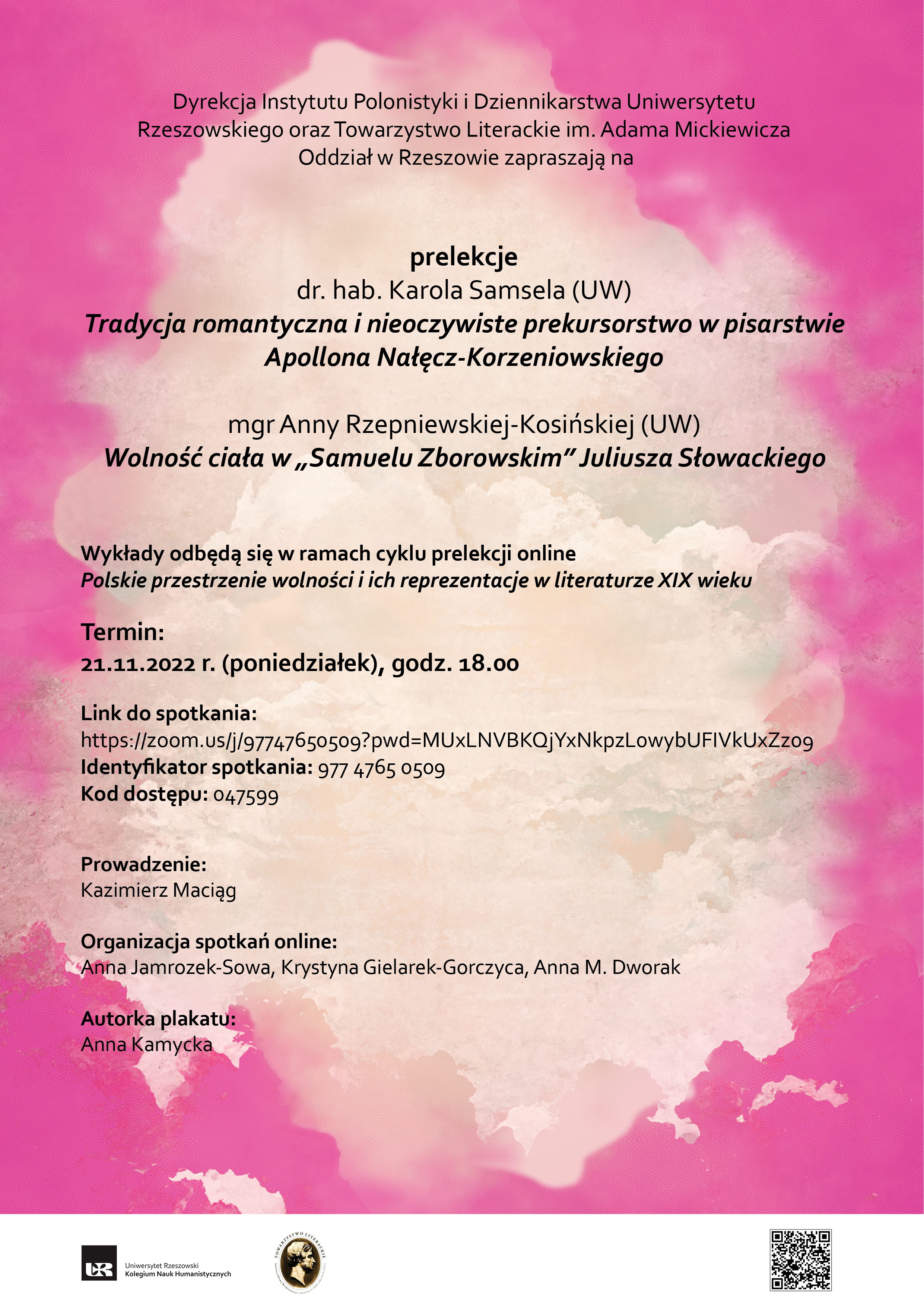 Dyrekcja Instytutu Polonistyki i Dziennikarstwa Uniwersytetu Rzeszowskiego oraz Towarzystwo Literackie im. Adama Mickiewicza Oddział w Rzeszowie zapraszają na prelekcje