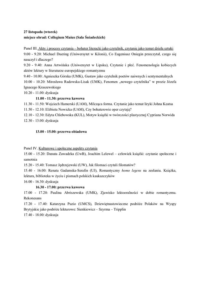 Instytut Filologii Polskiej UAM zaprasza na II Sympozjum im. Zofii Trojanowiczowej, pt. "Romantyzm polski i romantyzmy europejskie: Romantyk jako czytelnik", które odbędzie w dniach 26-28 listopada 2018 r. w Salonie Mickiewicza (Collegium Maius).