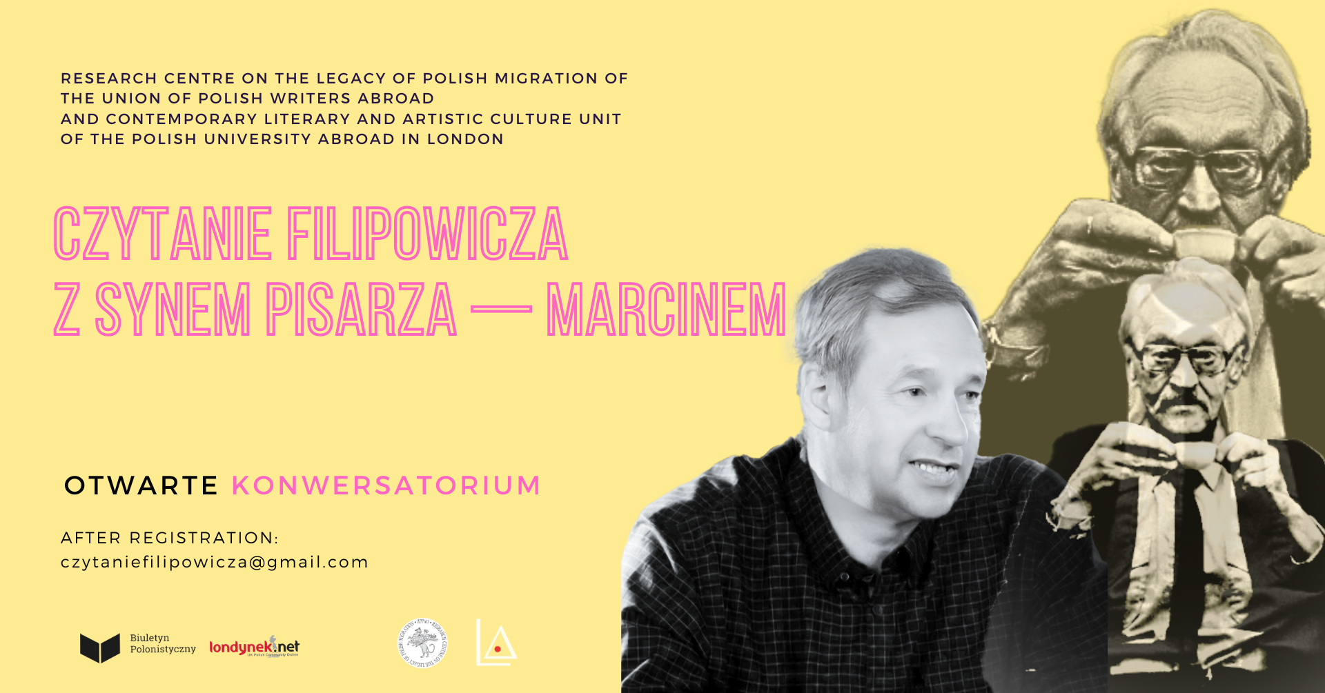 Ośrodek Badań Dziedzictwa Emigracji Polskiej (OBDEP) Związku Pisarzy Polskich na Obczyźnie (ZPPnO), Zakład Współczesnej Kultury Literackiej i Artystycznej oraz Zakład Informatyki Polskiego Uniwersytetu na Obczyźnie (PUNO) w Londynie zapraszają do udziału w serii spotkań konwersatoryjnych z badaczami, tłumaczami, propagatorami spuścizny literackiej Kornela Filipowicza. Dotyczyć będą bezpośrednio twórczości pisarza i jej recepcji, ale także związanych z nim twórców, m.in. Wisławy Szymborskiej i Marii Jaremy.