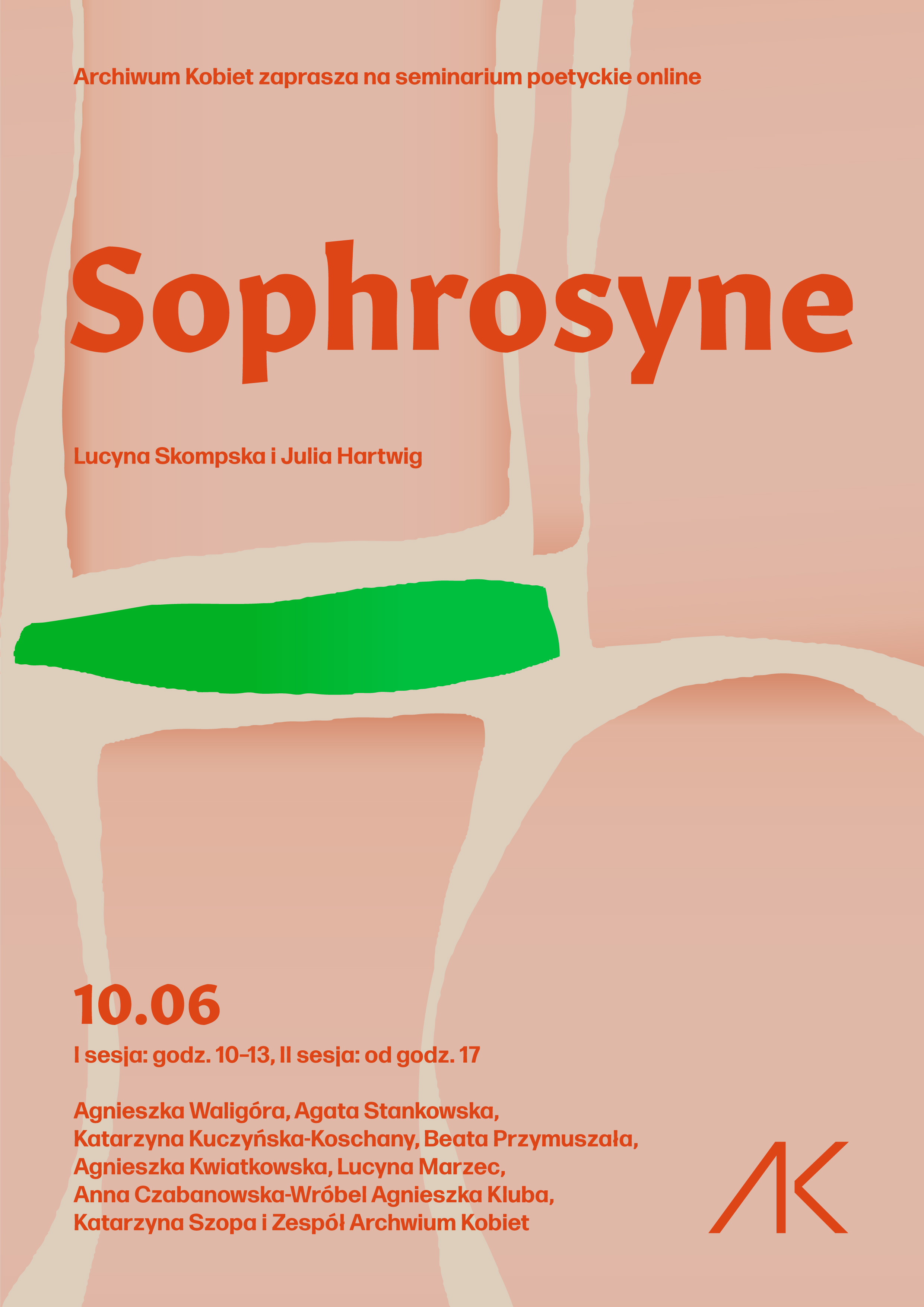 10 czerwca 2021 roku odbędzie się pierwsze seminarium poetyckie online zorganizowane przez Archiwum Kobiet: Sophrosyne. Lucyna Skompska i Julia Hartwig. Podczas spotkania zamierzamy omówić dwa wiersze Jasne niejasne Julii Hartwig, Bez powodu Lucyny Skompskiej i podjąć dyskusję o intelektualizmie w dwudziestowiecznej poezji kobiet.