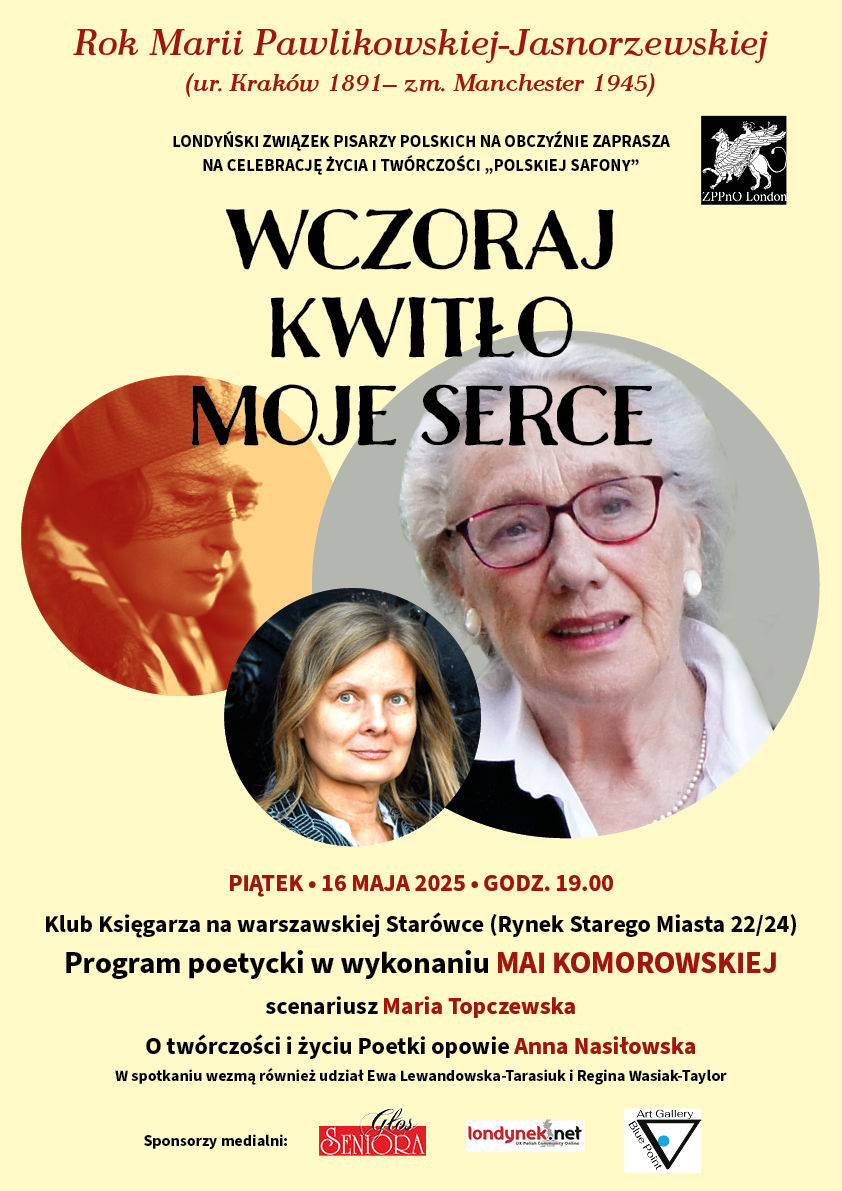 Wydarzenie otwiera Rok Marii Pawlikowskiej-Jasnorzewskiej, obchodzony przez Związek Pisarzy Polskich na Obczyźnie i partnerów z Polski. To hołd dla życia i twórczości jednej z najwybitniejszych polskich poetek XX wieku, nazywanej „polską Safoną”.