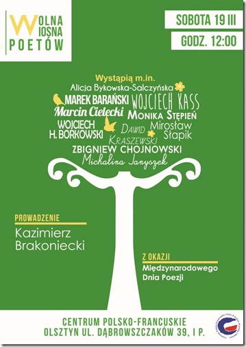 Zapraszamy 19 marca (w sobotę) do Centrum Francusko-Polskiego w Olsztynie, ul. Dąbrowszaków 39 (godz. 12.00). Spotkanie poprowadzi Kazimierz Brakoniecki.