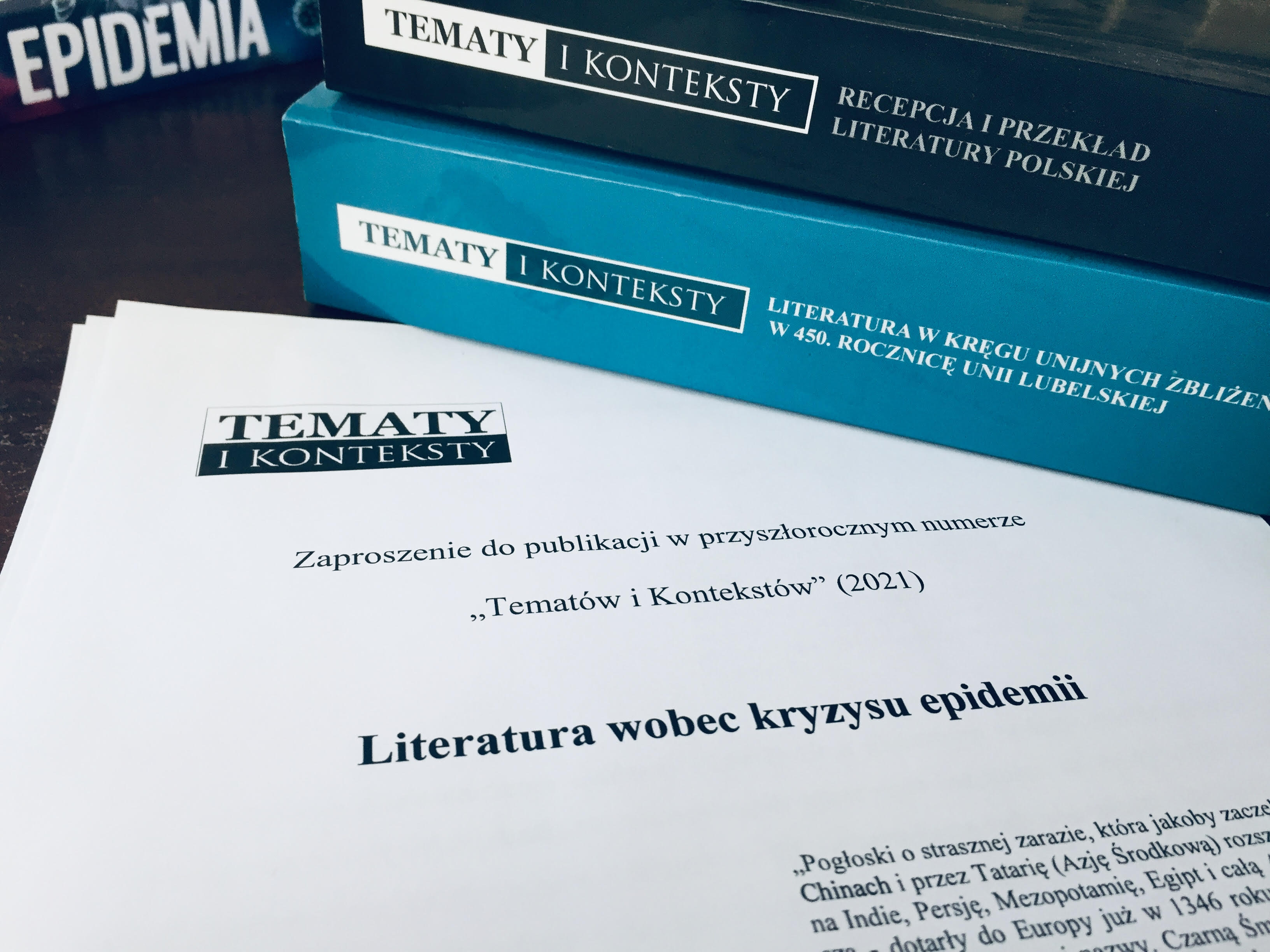 Serdecznie zapraszamy do publikacji artykułów w przyszłorocznym numerze czasopisma naukowego "Tematy i Konteksty". Temat numeru to "Literatura wobec kryzysu epidemii".