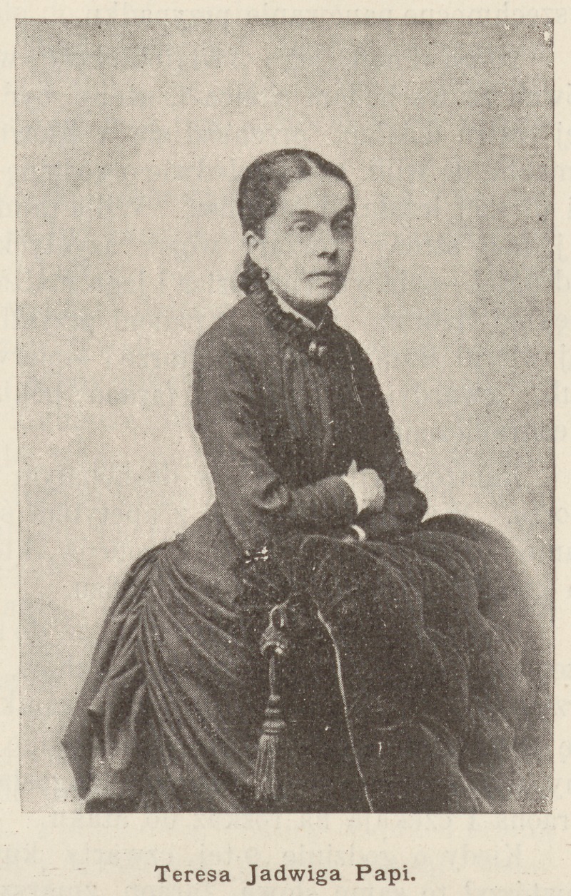 Teresa Jadwiga Papi (1843–1906) była nauczycielką języka polskiego i historii, pedagogiem, pisarką. Prowadziła jedną z najbardziej znanych warszawskich pensji dla dziewcząt, w której organizowała tajne nauczanie treści zakazanych przez władze carskie.