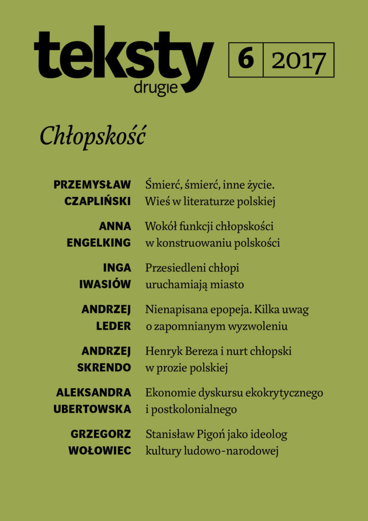 Numer 6/2017 „Tekstów Drugich” poświęcony jest kategorii chłopskości. W artykule wstępnym Kwestia chłopska Grzegorz Grochowski rozważa kwestię reaktywacji zainteresowania "nurtem chłopskim" w kulturze i debacie społecznej. Zdaniem autora od 2011 roku miało miejsce szereg wydarzeń artystycznych i naukowych, które należy uznać za przełomowe w odkrywaniu "chłopskości" na nowo.