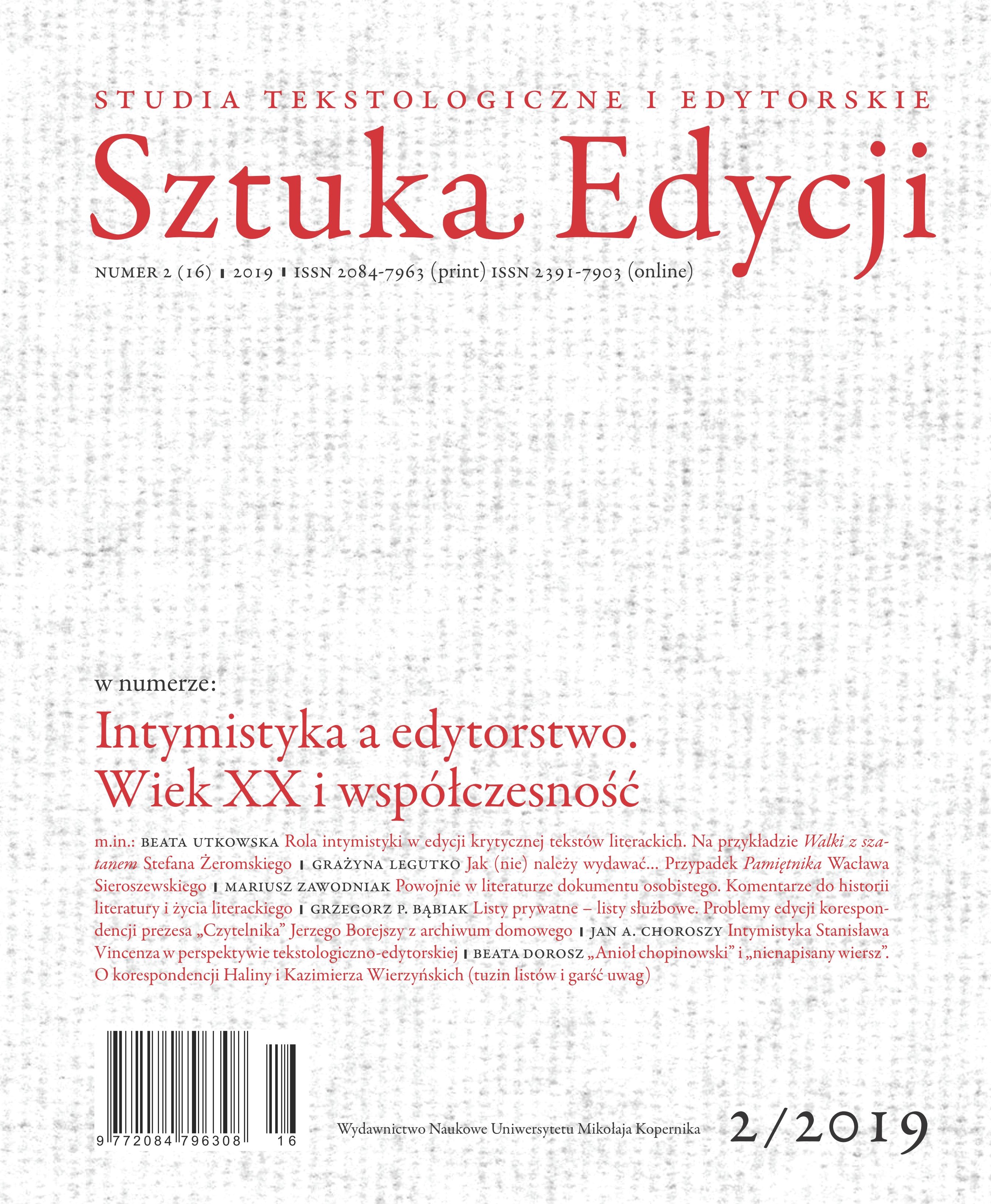 Intymistyka a edytorstwo. Wiek XX i współczesność / Vol 16, No 2 (2019)