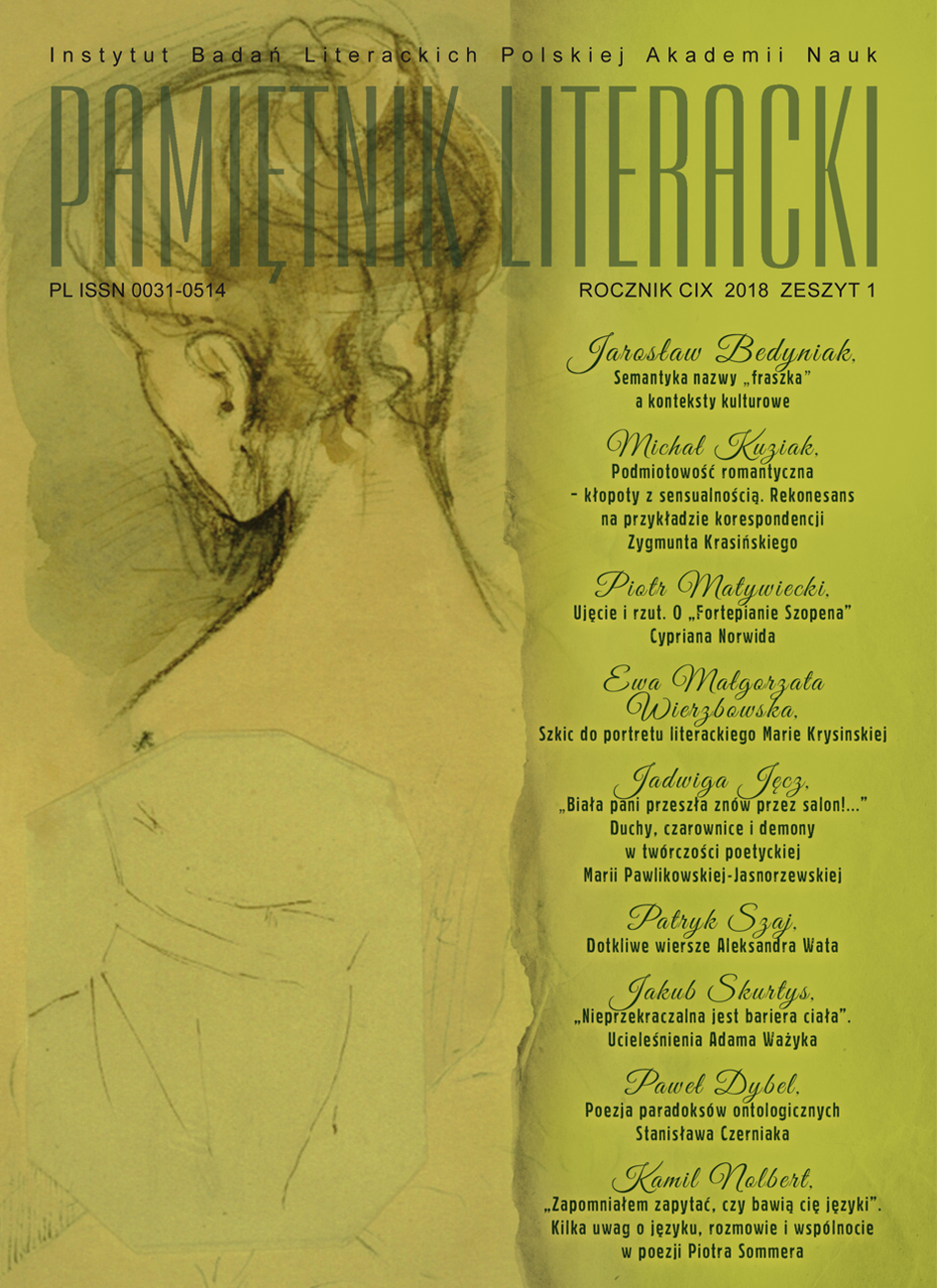 Michał Kuziak, Podmiotowość romantyczna – kłopoty z sensualnością. Rekonesans na przykładzie korespondencji Zygmunta Krasińskiego 27
