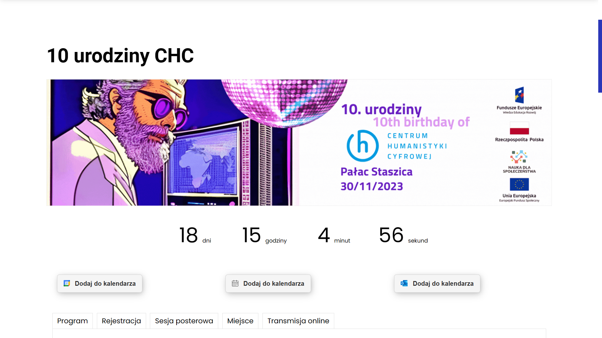 Szczegółowy i aktualizowany program wydarzenia znajduje się na stronie: https://chc.ibl.waw.pl/pl/10-urodziny/.