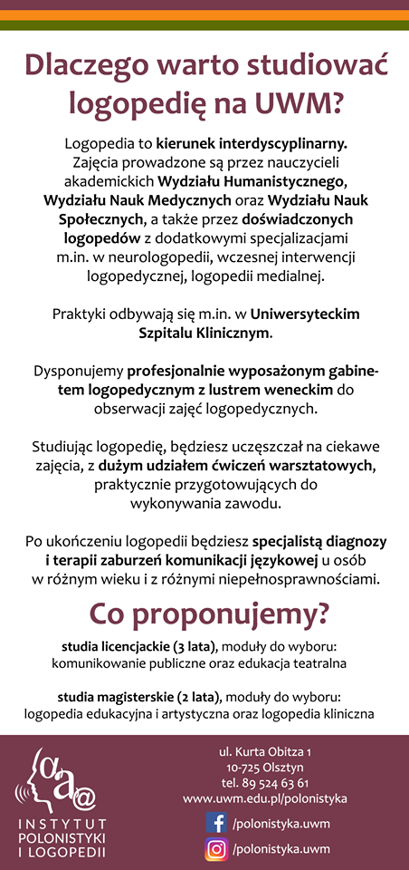 Więcej informacji - na stronie Instytutu Polonistyki i Logopedii.