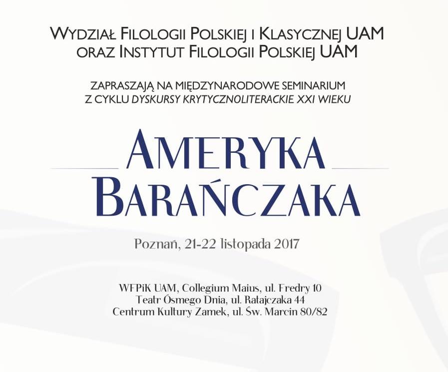 Wydział Filologii Polskiej i Klasycznej UAM wraz z Instytutem Filologii Polskiej UAM mają zaszczyt zaprosić na międzynarodowe seminarium "AMERYKA BARAŃCZAKA" z cyklu "Dyskursy krytycznoliterackie XXI wieku".
