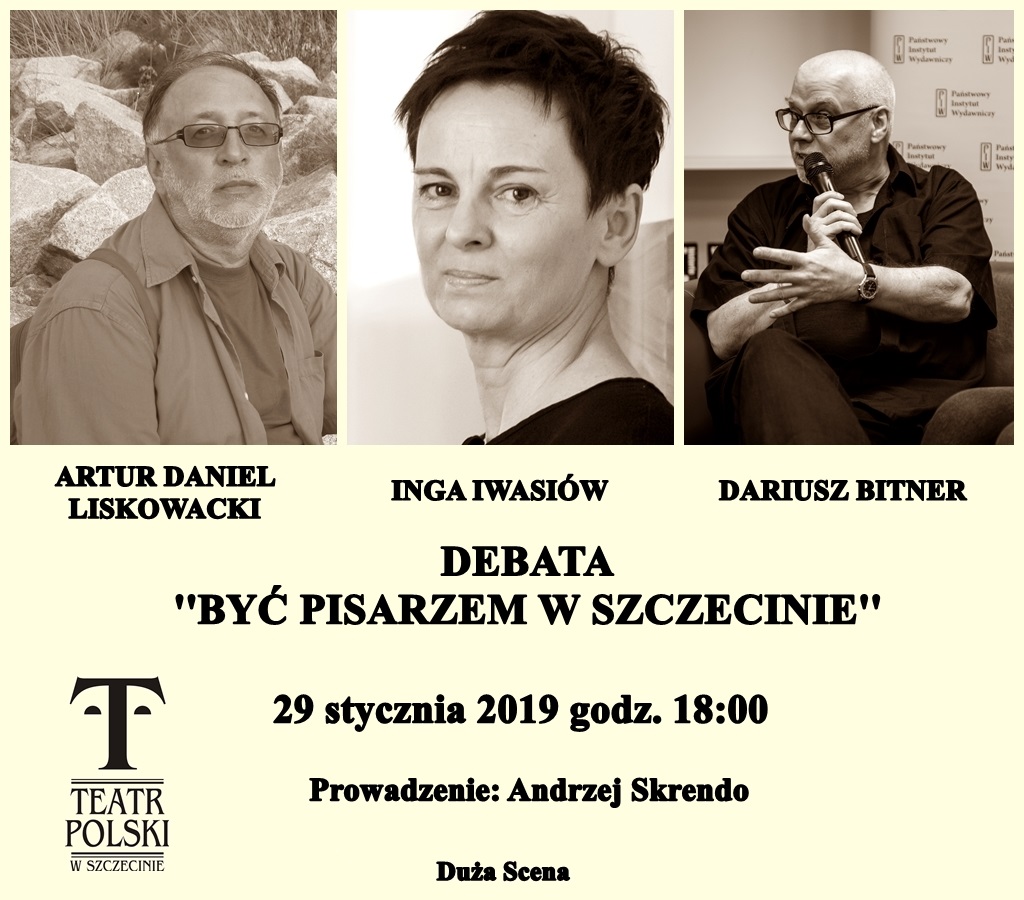 W ostatni wtorek bieżącego miesiąca, 29 stycznia 2019 r. o godzinie 18:00, w Teatrze Polskim odbędzie się debata pt.: „Być pisarzem w Szczecinie”.