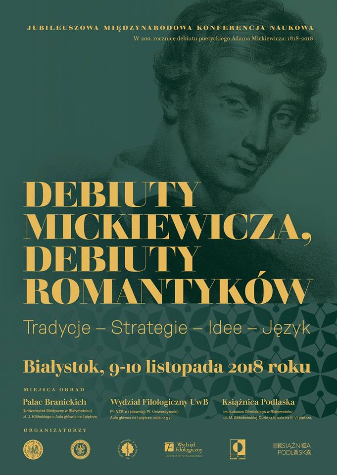 Zapraszamy na jubileuszową konferencję naukową w 200. rocznicę debiutu Adama Mickiewicza (1818-2018) "Debiuty Mickiewicza, debiuty romantyków. Tradycje - strategie - idee - język".