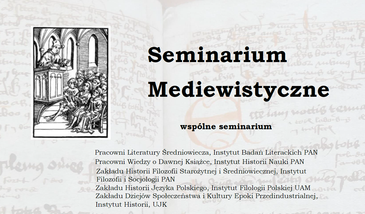 Pracownia Literatury Średniowiecza (Instytut Badań Literackich PAN), Pracownia Wiedzy o Dawnej Książce (Instytut Historii Nauki PAN) oraz Zakład Historii Filozofii Starożytnej i Średniowiecznej (Instytut Filozofii i Socjologii PAN) zapraszają na wspólne Spotkanie Mediewistyczne, które odbędzie się 19 czerwca 2020 o godz. 10. Odczyt wygłosi dr Dorota Masłej (Zakład Historii Języka Polskiego, Instytut Filologii Polskiej UAM).