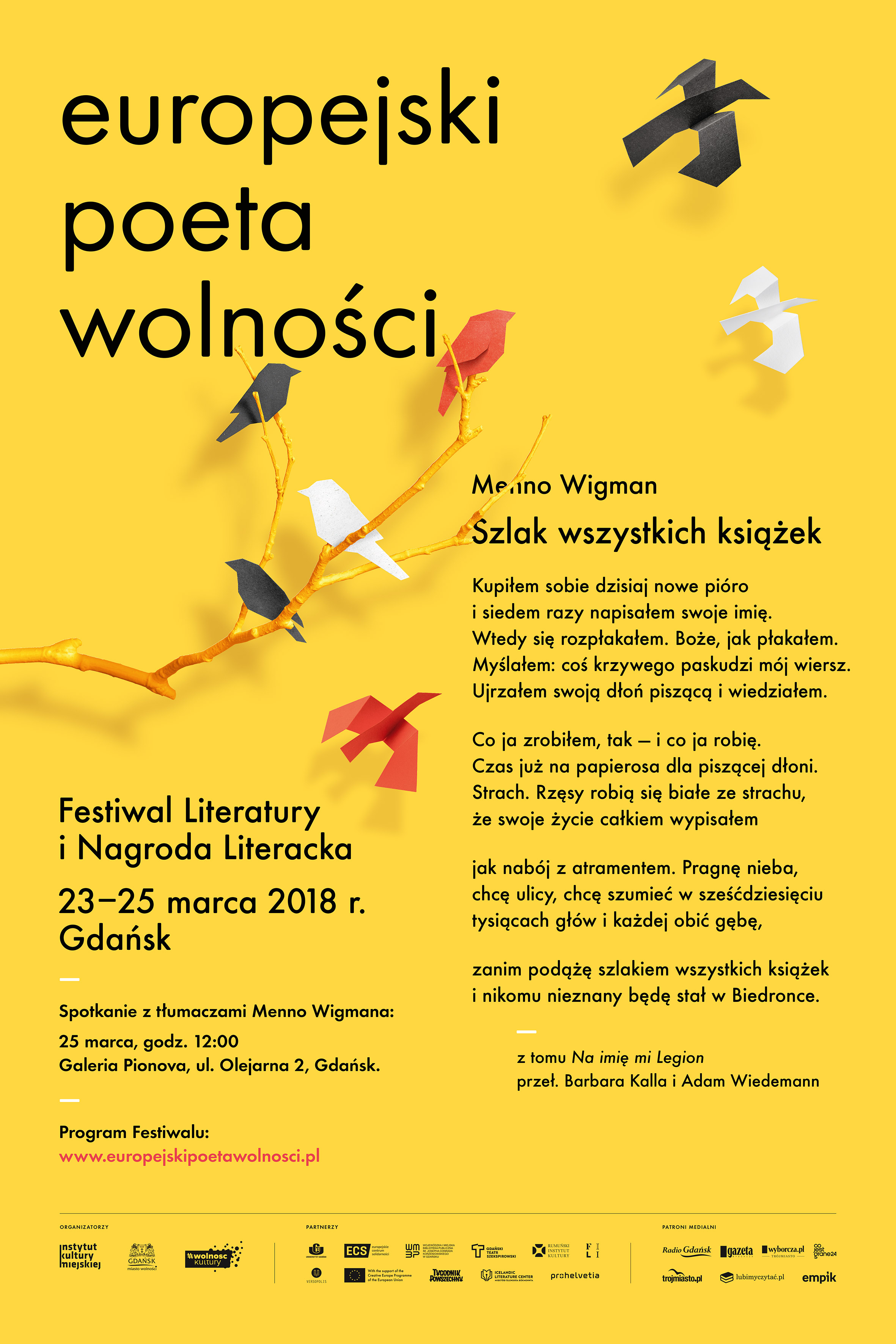 Festiwal Literatury Europejski Poeta Wolności, Gdańsk 23-25 marca 2018