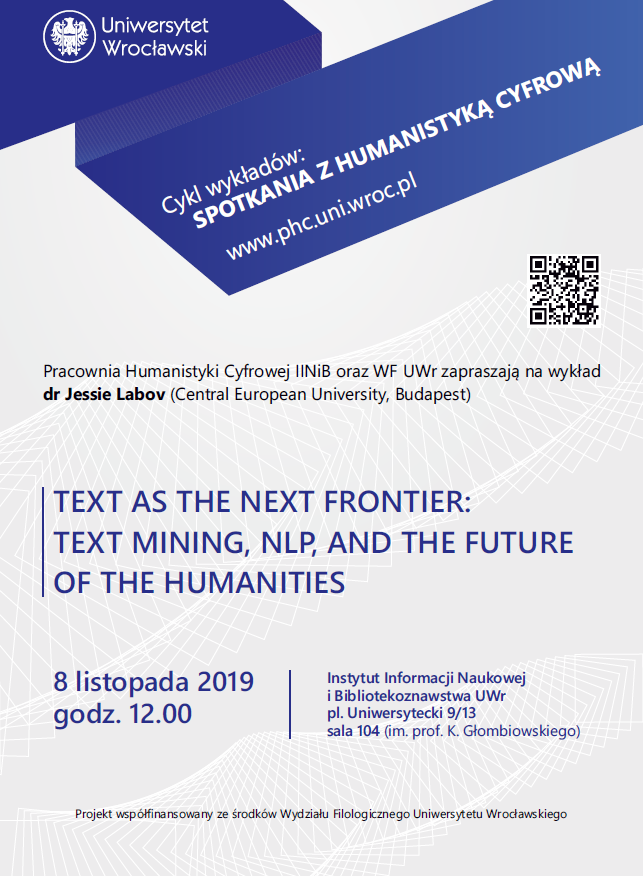 Jessie Labov: Tekst jako kolejna granica: eksploracja tekstu, NLP i przyszłość nauk humanistycznych / 10. wykład z cyklu "Spotkań z Humanistyką Cyfrową" (w języku angielskim)