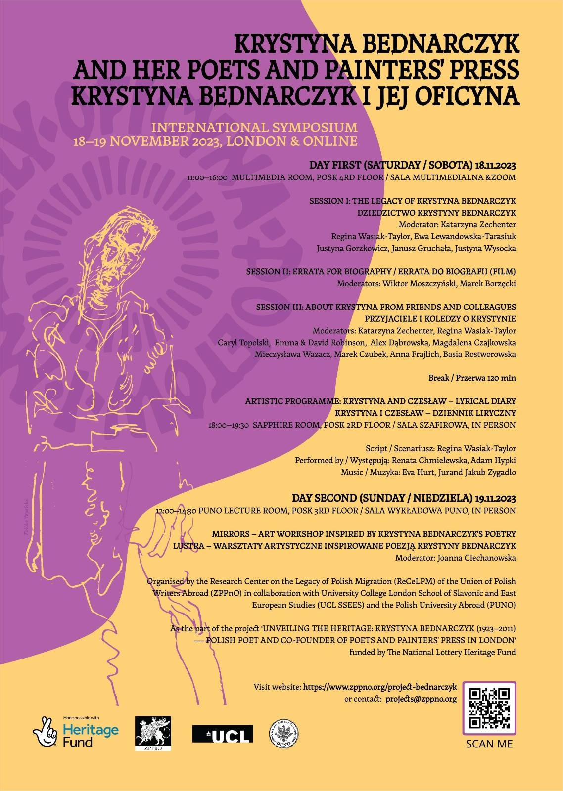 Ośrodek Badań Dziedzictwa Emigracji Polskiej (OBeDeP) Związku Pisarzy Polskich na Obczyźnie w Londynie (ZPPnO) we współpracy z University College London School of Slavonic and East European Studies (UCL SSEES) oraz z Polskim Uniwersytetem na Obczyźnie (PUNO) zapraszają serdecznie na międzynarodowe Sympozjum poświęcone życiu i twórczości Krystyna Bednarczyk.
