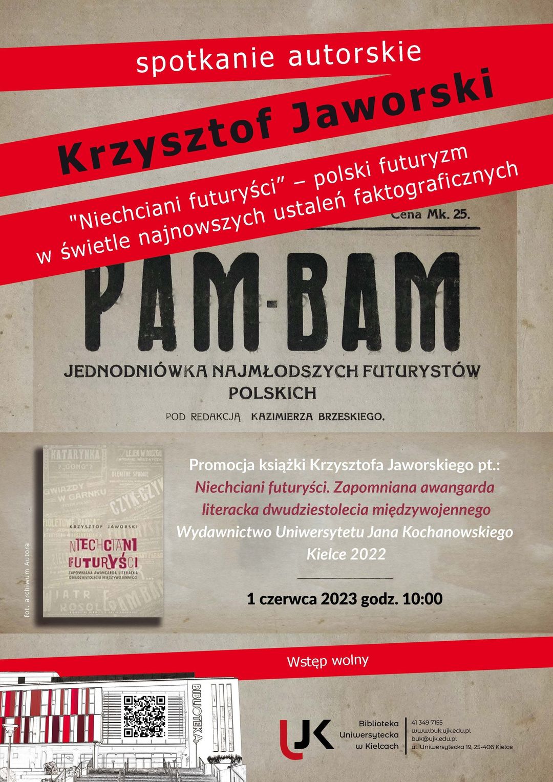 Promocja książki Krzysztofa Jaworskiego pt. "Niechciani futurysci. Zapomniana awangarda literacka dwudziestolecia międzywojennego", Wydawnictwo Uniwersytetu Jana Kochanowskiego, Kielce 2022.