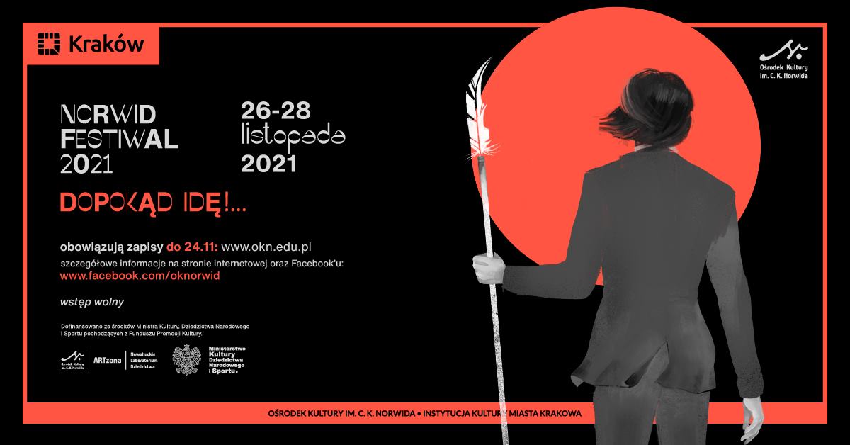Ośrodek Kultury im. C. K. Norwida w Krakowie uczci pamięć swojego patrona podczas Norwid Festiwal 2021, organizowanego w dniach 26-28 listopada 2021 r. pod hasłem „Dopokąd idę!...” dzięki dofinansowaniu ze środków Ministra Kultury, Dziedzictwa Narodowego i Sportu pochodzących z Funduszu Promocji Kultury, a także wsparciu Miasta Krakowa.