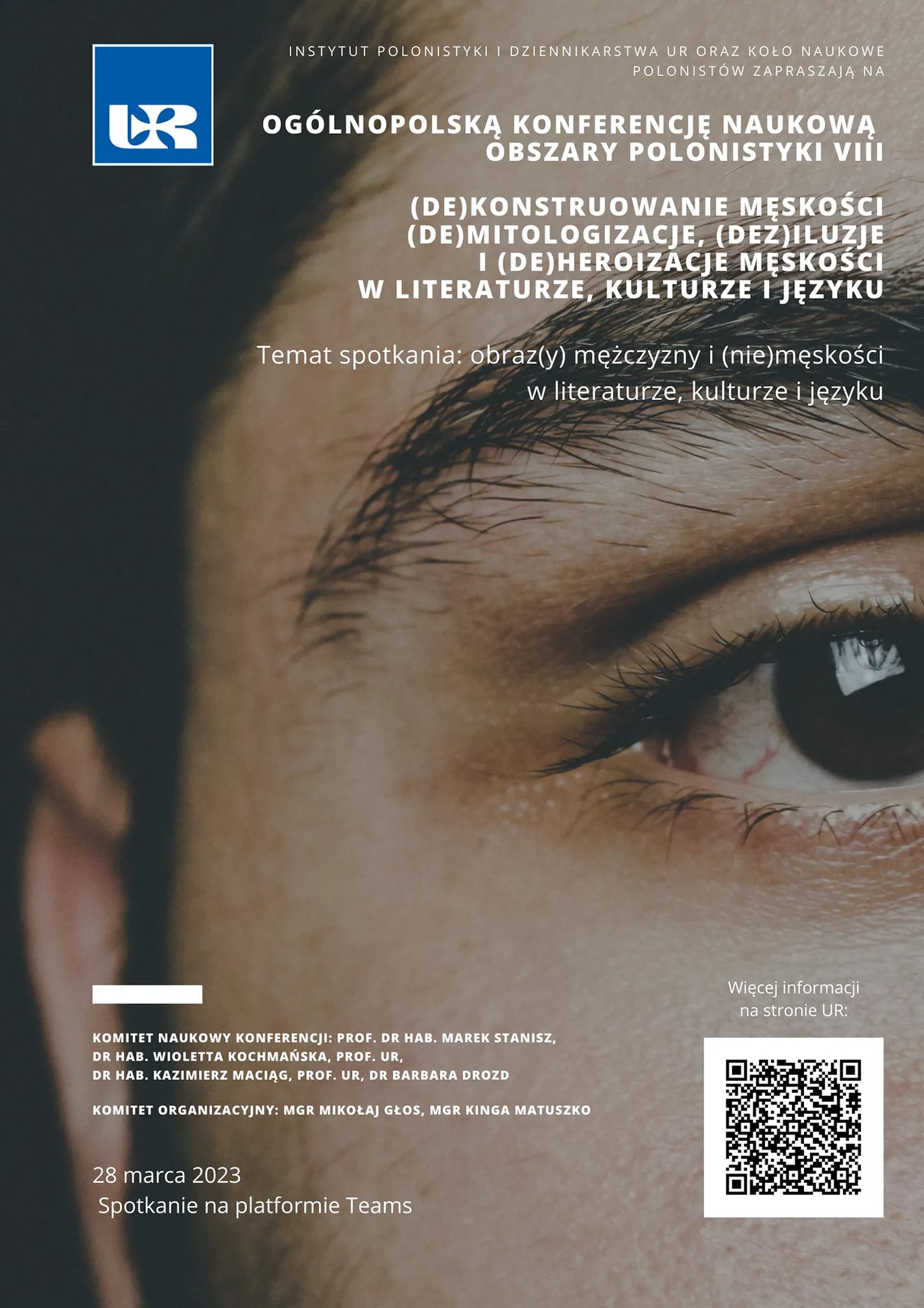 Instytut Polonistyki i Dziennikarstwa Uniwersytetu Rzeszowskiego oraz Koło Naukowe Polonistów mają zaszczyt zaprosić młodych badaczy i młode badaczki na kolejną interdyscyplinarną ogólnopolską konferencję naukową z cyklu OBSZARY POLONISTYKI, która odbędzie się 28 marca 2023 roku (wtorek) w formie zdalnej na platformie Teams. Tematem tego spotkania chcemy uczynić obraz(y) mężczyzny i (nie)męskości w literaturze, kulturze i języku.