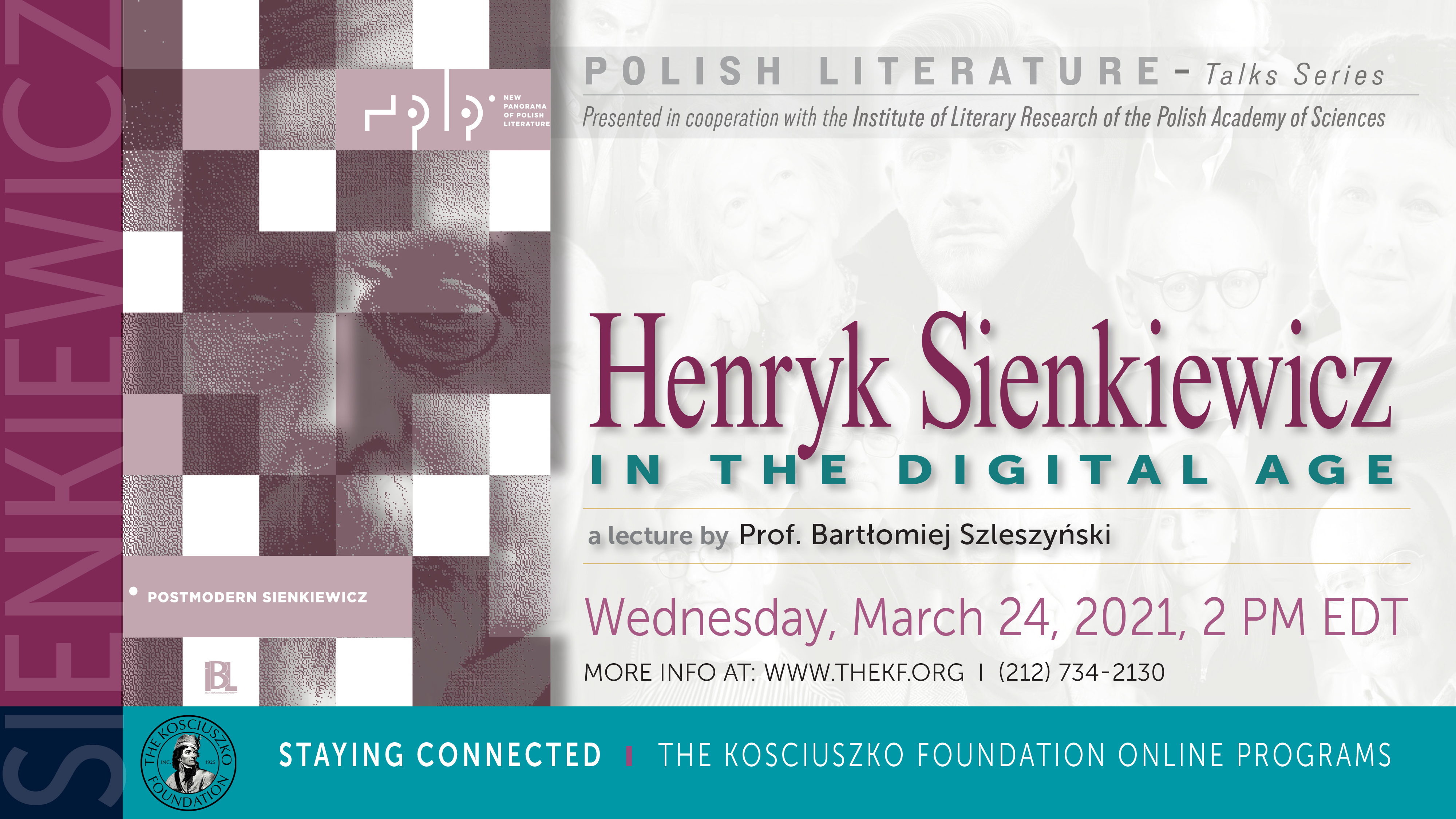 Prof. Bartłomiej Szleszyński, "Henryk Sienkiewicz w epoce cyfrowej" ("Henryk Sienkiewicz in the digital age") / pierwsze spotkanie z cyklu webinariów IBL PAN i Fundacji Kościuszkowskiej