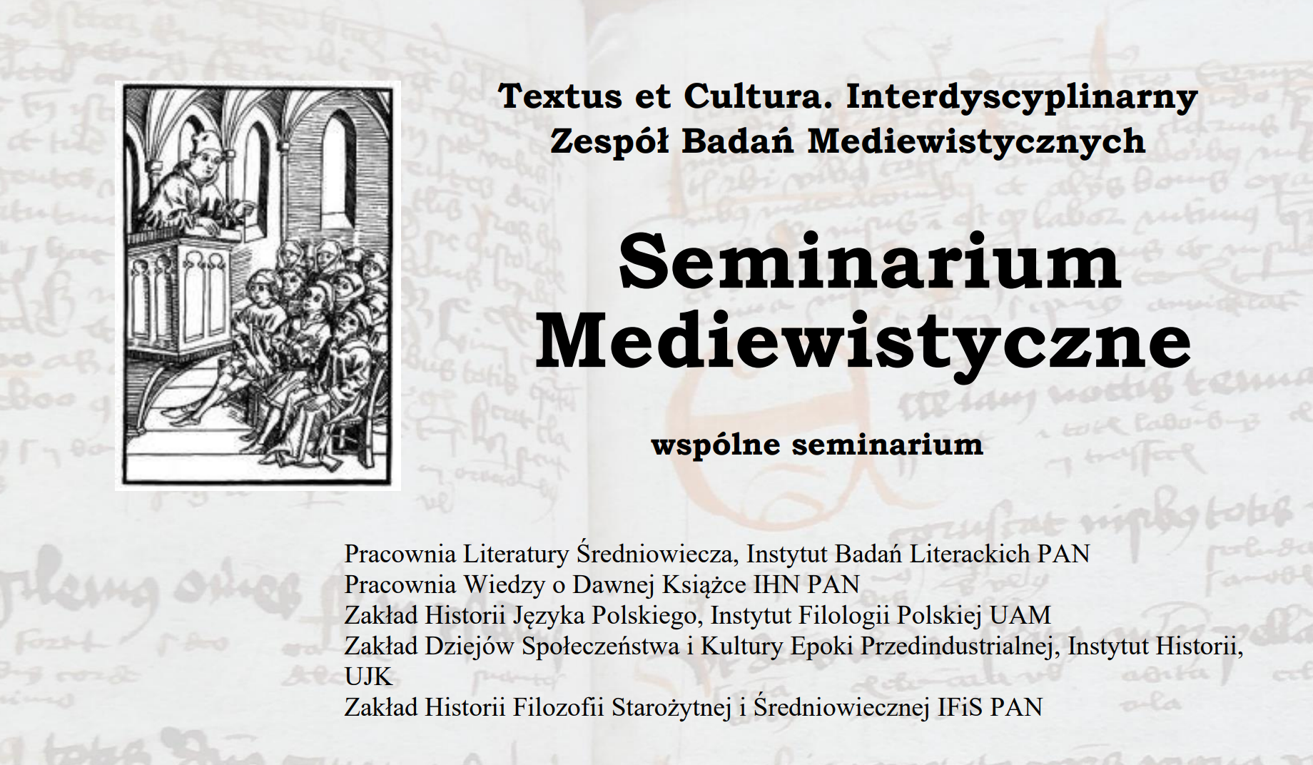 Textus et Cultura. Interdyscyplinarny Zespół Badań Mediewistycznych zaprasza na pierwsze po wakacyjnej przerwie Seminarium Mediewistyczne.