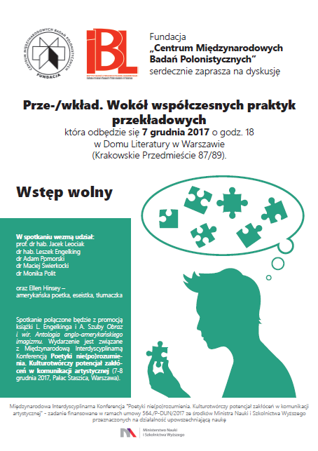 Fundacja „Centrum Międzynarodowych Badań Polonistycznych” serdecznie zaprasza na dyskusję "Prze-/wkład. Wokół współczesnych praktyk przekładowych",