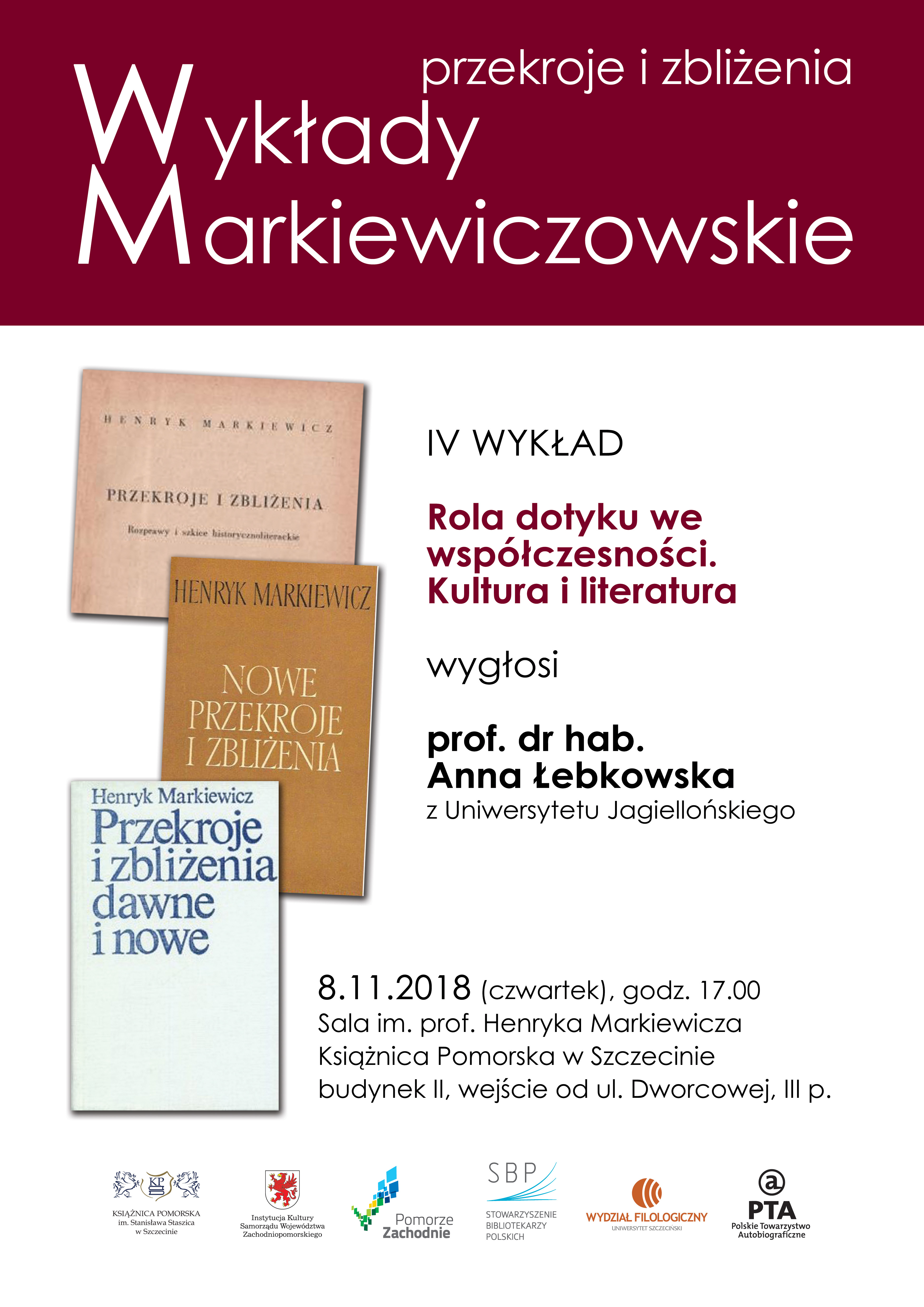 W 5. rocznicę śmierci prof. H. Markiewicza wykład wygłosi prof. Anna Łebkowska z Uniwersytetu Jagiellońskiego, należąca do grona współpracowników prof. Markiewicza, redaktor naczelna „Ruchu Literackiego", prodziekan Wydziału Polonistyki Uniwersytetu Jagiellońskiego ds. naukowych, autorka wielu książek i opracowań. Zakres tematyczny badań prof. A. Łebkowskiej obejmuje: badanie literatury w perspektywie antropologii kulturowej, teorie genderowe, współczesne teorie fikcji literackiej; teorie możliwych światów, literaturę XX i XXI wieku (w tym hipertekstową powieść interaktywną); strategie retoryczne.