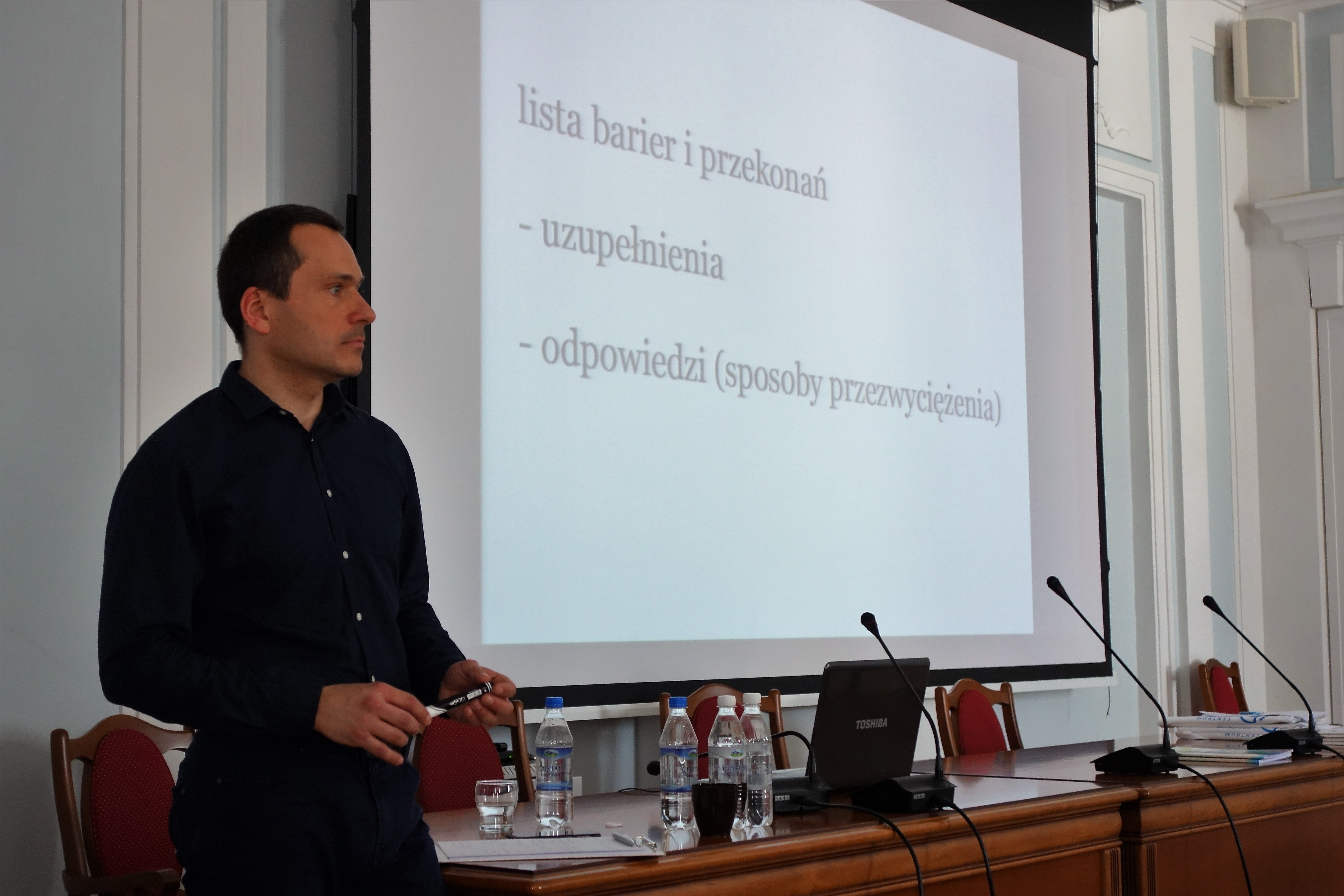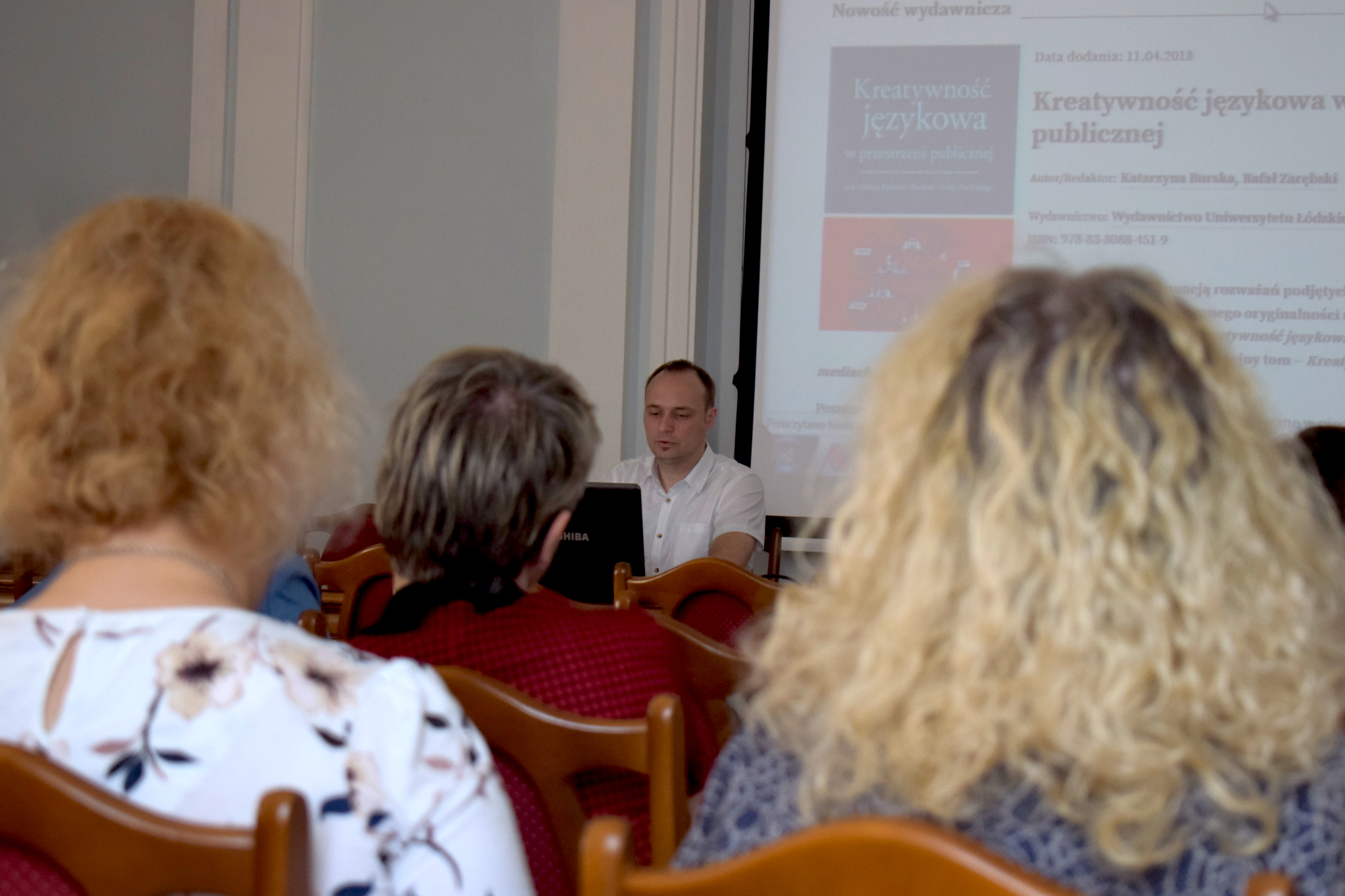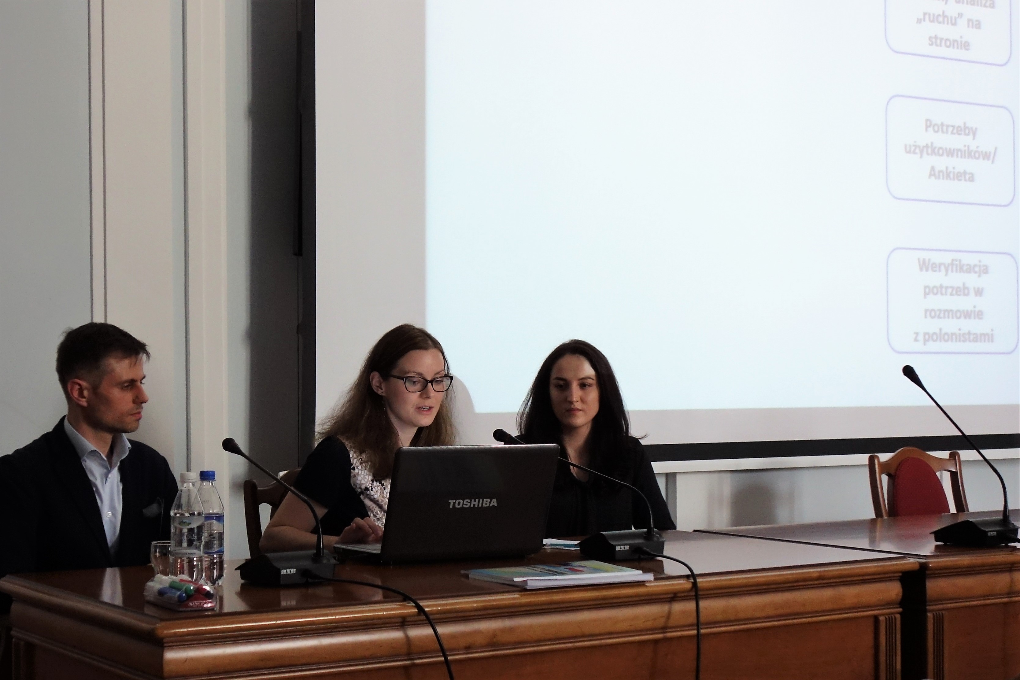 Następnie głos zabrał dr Bartłomiej Szleszyński, którego wystąpienie dotyczyło m.in. sposobów publikowania treści naukowych w Internecie. Na przykładzie realizowanych projektów – Nowej Panoramy Literatury Polskiej oraz Korzenie Janusza Korczaka pokazał wagę odchodzenia od modelu encyklopedii w prezentacji badań polonistycznych, rolę grafiki i strony wizualnej oraz zmianę sposobu myślenia, w którym nie chodzi o samo przeniesienie treści, ale o funkcjonalne wykorzystanie narzędzi cyfrowych, w tym możliwości linkowania i przeszukiwania baz danych.