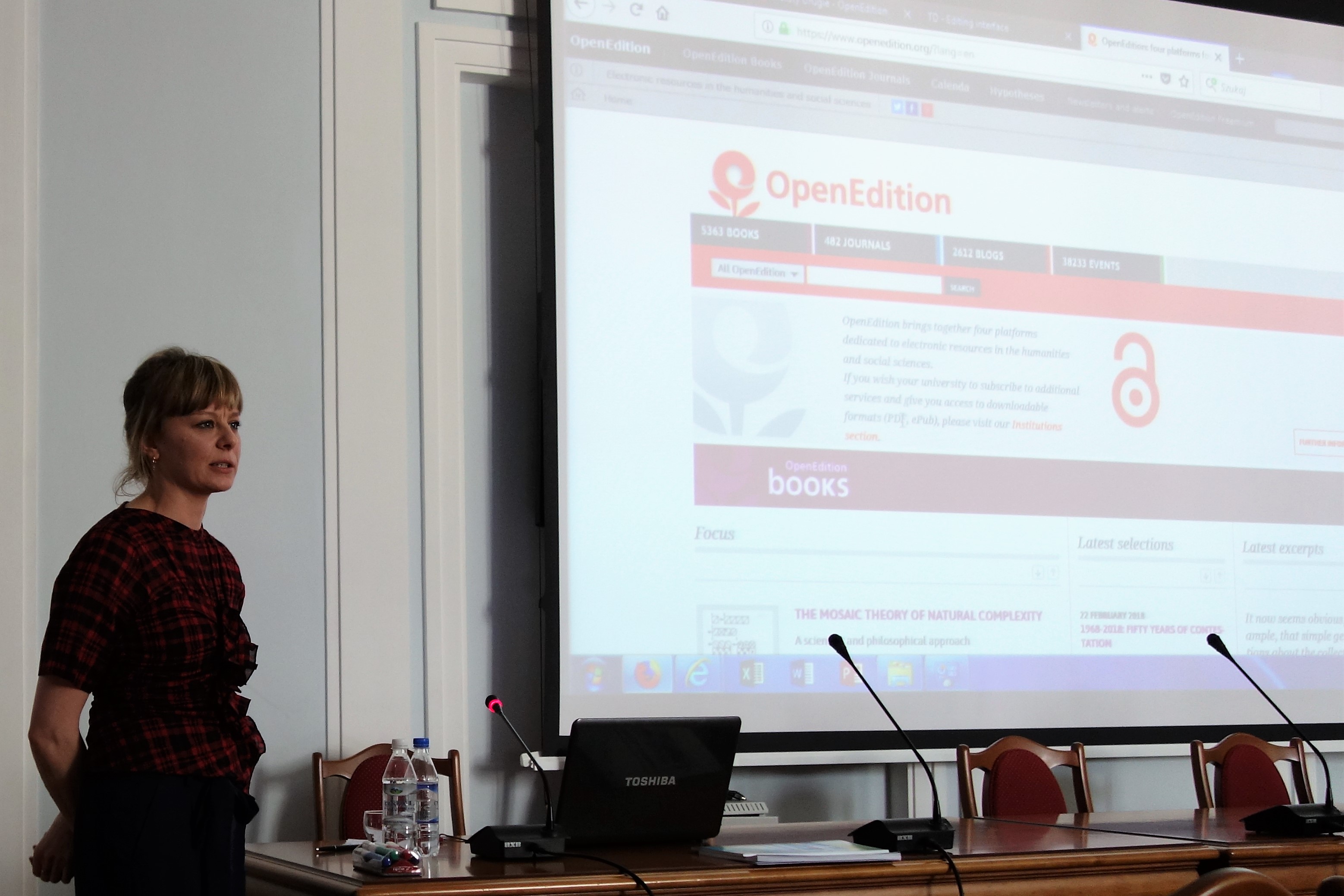 Kolejny referat, Barbary Jędraszko, dotyczył udostępniania tekstów naukowych w wolnym dostępie, zwłaszcza „Tekstów Drugich” na platformie OpenEdition. Jak podkreślała prelegentka, udostępnianie treści jest jednym ze sposobów na wprowadzenie polskiej nauki na bardziej zaawansowany poziom, a rzeczą, na której obecnie należy się skupić, jest wypracowanie modelu biznesowego dla pozostałych czasopism.
