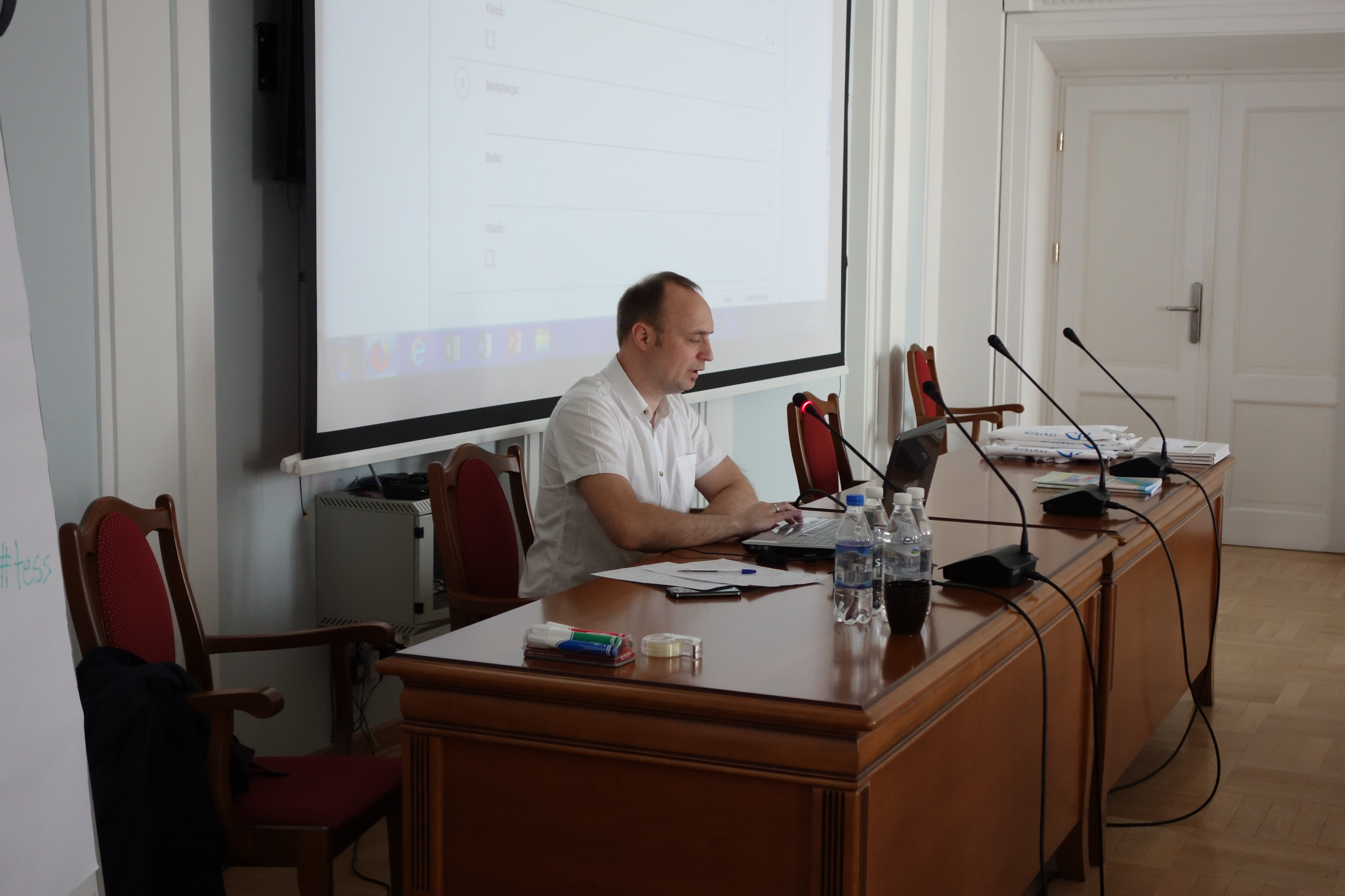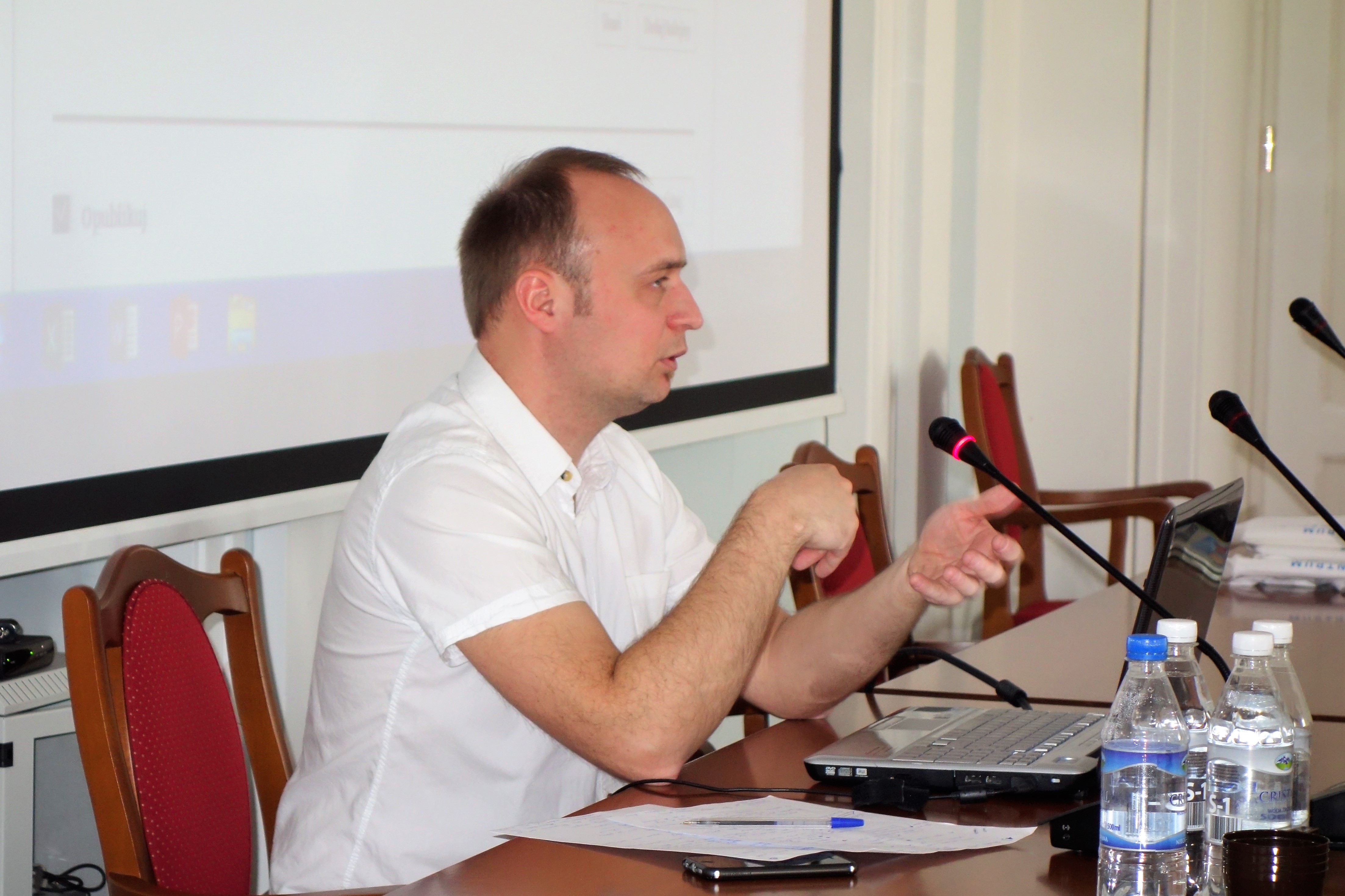 Michał Kozak przedstawił zgromadzonym nowe funkcjonalności „Biuletynu” i korzyści dla użytkowników, wynikające z wprowadzonych zmian. Przybliżył zgromadzonym również inne prowadzone przez PSCC projekty, które mogą być inspiracją do budowania naukowych baz danych.