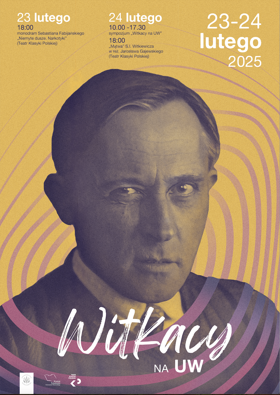 Serdecznie zapraszamy do udziału w projekcie „Witkacy na UW”, który organizowany jest we współpracy Wydziału Polonistyki UW oraz Teatru Klasyki Polskiej. W ramach projektu w Audytorium Maxiumum 23 i 24 lutego wystawione zostaną dwa spektakle – „„Niemyte dusze. Narkotyki” monodram Sebastiana Fabijańskiego (23.02) oraz „Mątwa” Teatru Klasyki Polskiej, reż. Jarosław Gajewski (24.02). Wstęp na obywa spektakle jest bezpłatny, obowiązuje natomiast rezerwacja wejściówek przez e-mail: bow@teatrklasykipolskiej.pl