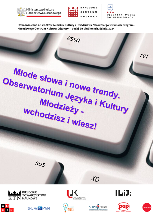 To projekt realizowany przez Kieleckie Towarzystwo Naukowe wraz z partnerami, mający na celu profesjonalną modernizację strony internetowej Obserwatorium Języka i Kultury Młodzieży oraz działania promocyjne i popularnonaukowe (w tym wykłady, warsztaty, podcasty/audycje), skierowane do młodzieży szkolnej, studentów i dorosłych (rodzice, pedagodzy, seniorzy), a także profesjonalistów